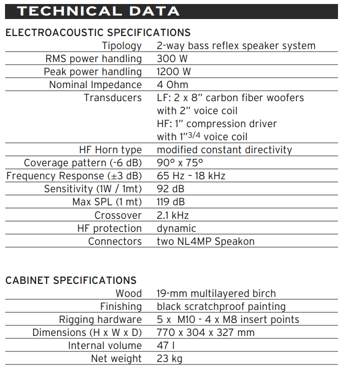 double carbon-fiber 8” LF drivers make the PA281 suitable even for difficult climatic environments.
